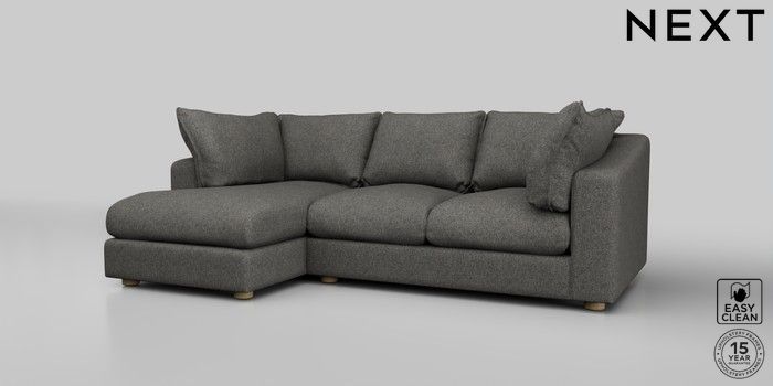 7.2.10 The Sumptuous Deep Relaxed Sit Medium Sofa Chaise - Left Hand Tweedy Blend Easy Clean Dark Grey Low Tube - Light | Made Click here to use our website with more accessibility support, for example screen readers