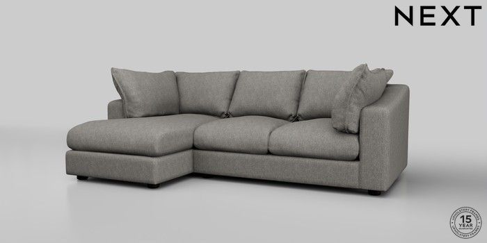 7.2.10 The Sumptuous Deep Relaxed Sit Medium Sofa Chaise - Left Hand Tweedy Chenille Mid Grey Low Tube - Dark | Made Click here to use our website with more accessibility support, for example screen readers