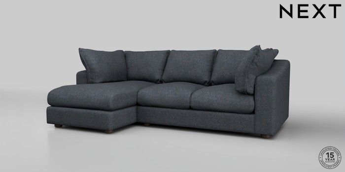 7.2.10 The Sumptuous Deep Relaxed Sit Medium Sofa Chaise - Left Hand Tweedy Chenille Navy Blue Low Tube - Mid | Made Click here to use our website with more accessibility support, for example screen readers