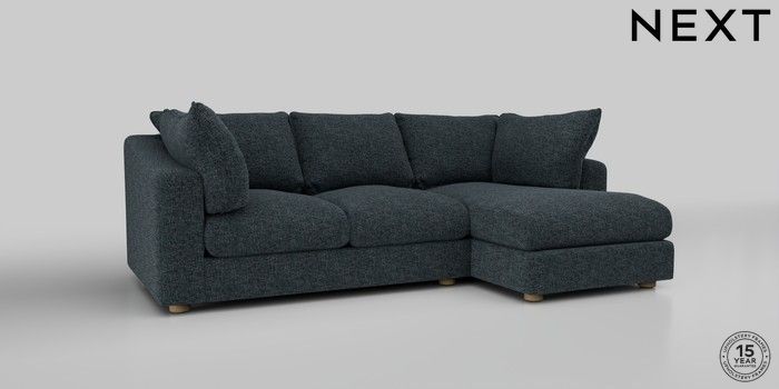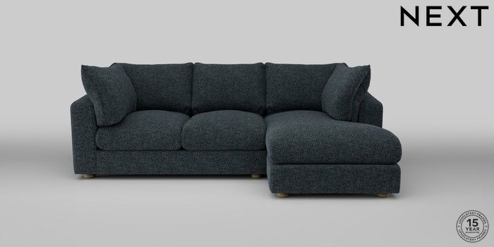 7.2.10 The Sumptuous Deep Relaxed Sit Medium Sofa Chaise - Right Hand Chunky Chenille Dark Navy Blue Low Tube - Light | Made Click here to use our website with more accessibility support, for example screen readers