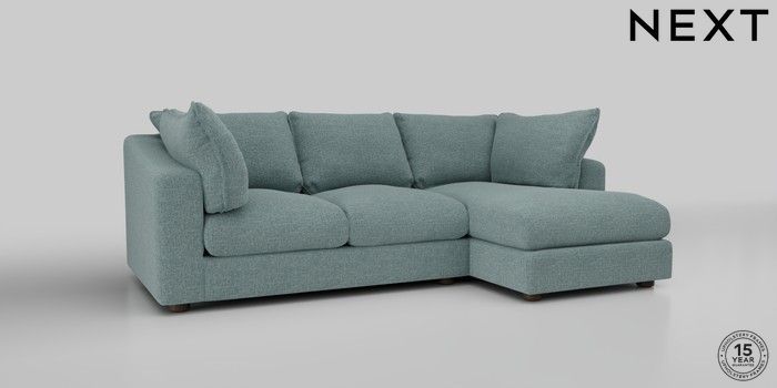7.2.10 The Sumptuous Deep Relaxed Sit Medium Sofa Chaise - Right Hand Chunky Chenille Light Teal Green Low Tube - Mid | Made Click here to use our website with more accessibility support, for example screen readers