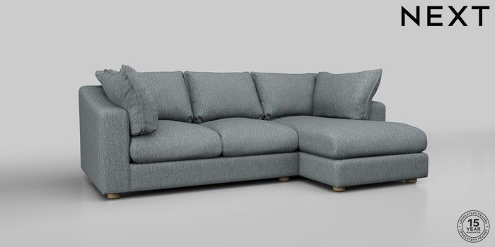 7.2.10 The Sumptuous Deep Relaxed Sit Medium Sofa Chaise - Right Hand Chunky Weave Mid Blue Low Tube - Light | Made Click here to use our website with more accessibility support, for example screen readers