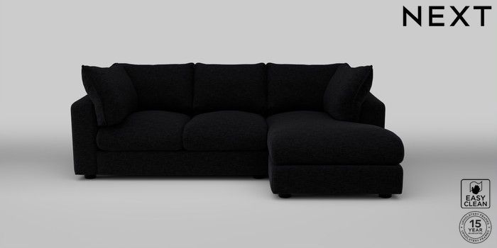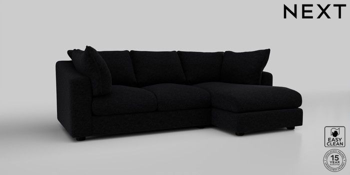 7.2.10 The Sumptuous Deep Relaxed Sit Medium Sofa Chaise - Right Hand Fine Chenille Easy Clean Black Low Tube - Dark | Made Click here to use our website with more accessibility support, for example screen readers
