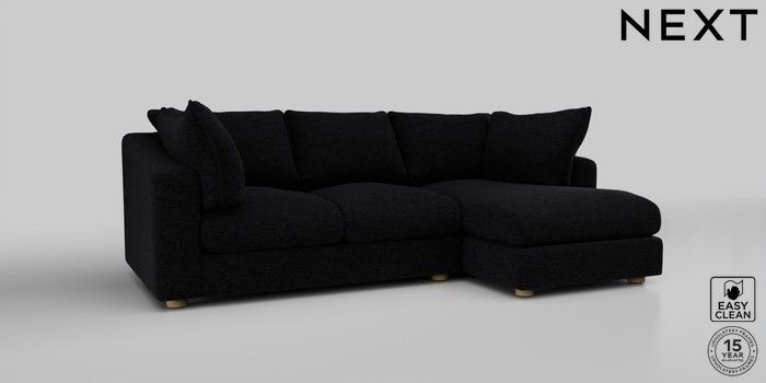 7.2.10 The Sumptuous Deep Relaxed Sit Medium Sofa Chaise - Right Hand Fine Chenille Easy Clean Black Low Tube - Light | Made Click here to use our website with more accessibility support, for example screen readers