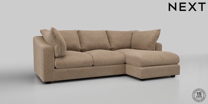 7.2.10 The Sumptuous Deep Relaxed Sit Medium Sofa Chaise - Right Hand Luxe Chenille Mid Camel Beige Low Tube - Dark | Made Click here to use our website with more accessibility support, for example screen readers