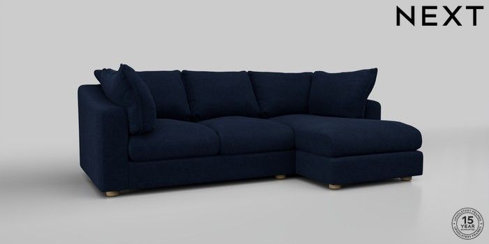 7.2.10 The Sumptuous Deep Relaxed Sit Medium Sofa Chaise - Right Hand Luxe Chenille Navy Blue Low Tube - Light | Made Click here to use our website with more accessibility support, for example screen readers