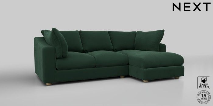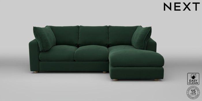 7.2.10 The Sumptuous Deep Relaxed Sit Medium Sofa Chaise - Right Hand Plush Velvet Easy Clean Bottle Green Low Tube - Light | Made Click here to use our website with more accessibility support, for example screen readers