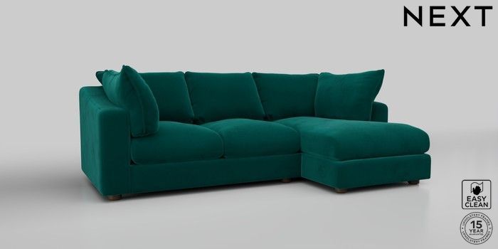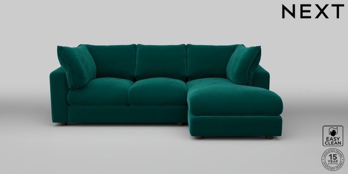 7.2.10 The Sumptuous Deep Relaxed Sit Medium Sofa Chaise - Right Hand Plush Velvet Easy Clean Juniper Green Low Tube - Mid | Made Click here to use our website with more accessibility support, for example screen readers