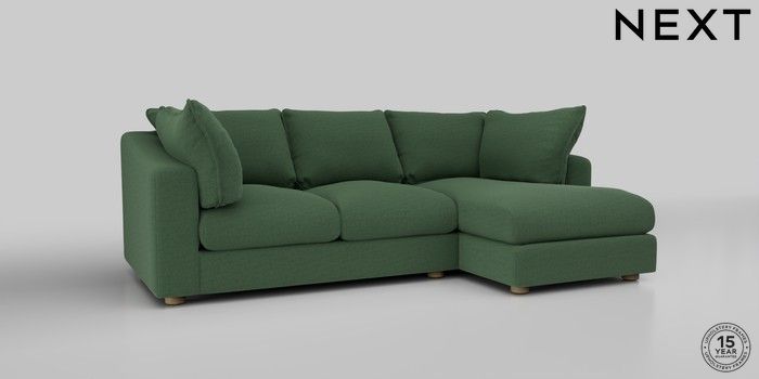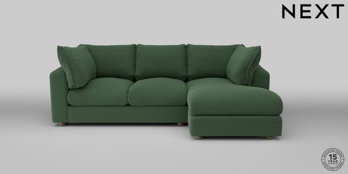 7.2.10 The Sumptuous Deep Relaxed Sit Medium Sofa Chaise - Right Hand Relaxed Linen Look Dark Green Low Tube - Light | Made Click here to use our website with more accessibility support, for example screen readers