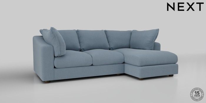 7.2.10 The Sumptuous Deep Relaxed Sit Medium Sofa Chaise - Right Hand Relaxed Linen Look Mid Blue Low Tube - Mid | Made Click here to use our website with more accessibility support, for example screen readers