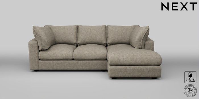 7.2.10 The Sumptuous Deep Relaxed Sit Medium Sofa Chaise - Right Hand Woven Chenille Easy Clean Mid Natural Low Tube - Dark | Made Click here to use our website with more accessibility support, for example screen readers