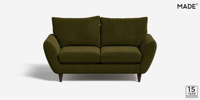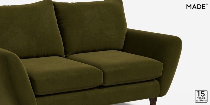 6.12.1 Tinsley by Made 2 Seater Sofa Matt Velvet Easy Clean Deep Olive Green Tapered - Walnut | Made Click here to use our website with more accessibility support, for example screen readers