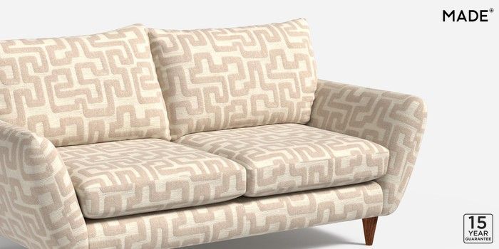 6.12.1 Tinsley by Made 3 Seater Small Sofa Clyde Abstract Light Oatmeal Natural Tapered - Walnut | Made Click here to use our website with more accessibility support, for example screen readers