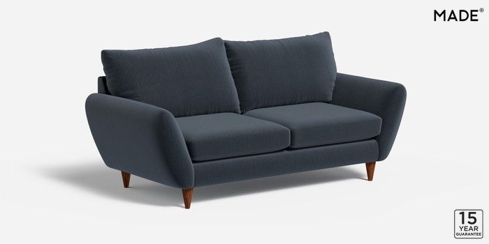 6.12.1 Tinsley by Made 3 Seater Small Sofa Matt Corduroy Midnight Blue Tapered - Walnut | Made Click here to use our website with more accessibility support, for example screen readers