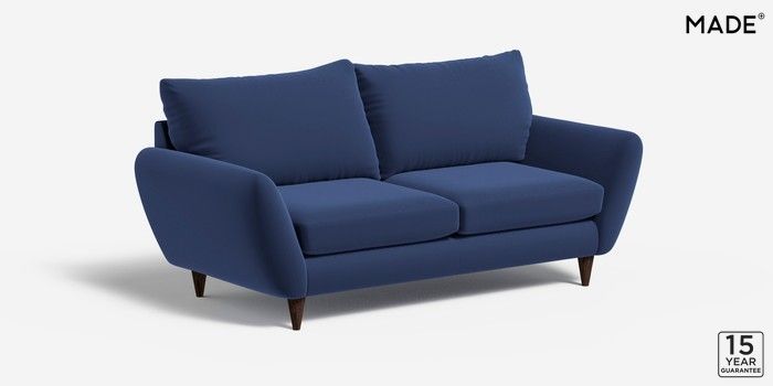 6.12.1 Tinsley by Made 3 Seater Small Sofa Matt Velvet Easy Clean Navy Blue Tapered - Walnut | Made Click here to use our website with more accessibility support, for example screen readers