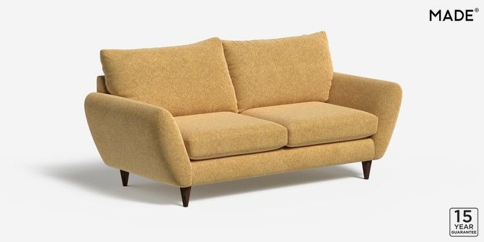 6.12.1 Tinsley by Made 3 Seater Small Sofa Soft Chenille Easy Clean Yellow Ochre Tapered - Walnut | Made Click here to use our website with more accessibility support, for example screen readers