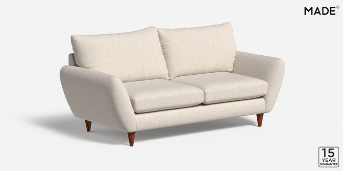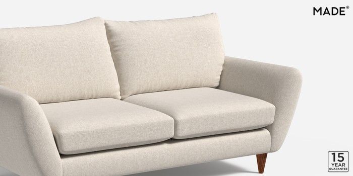 6.12.1 Tinsley by Made 3 Seater Small Sofa Textured Slub Weave Light Natural Tapered - Walnut | Made Click here to use our website with more accessibility support, for example screen readers