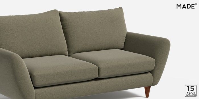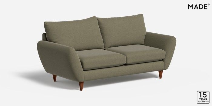 6.12.1 Tinsley by Made 3 Seater Small Sofa Textured Slub Weave Soft Olive Green Tapered - Walnut | Made Click here to use our website with more accessibility support, for example screen readers