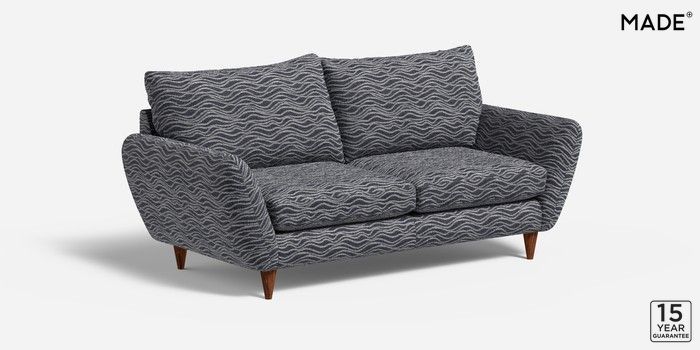 6.12.1 Tinsley by Made 3 Seater Small Sofa Textured Wave Boucle Dark Ink Blue Tapered - Walnut | Made Click here to use our website with more accessibility support, for example screen readers