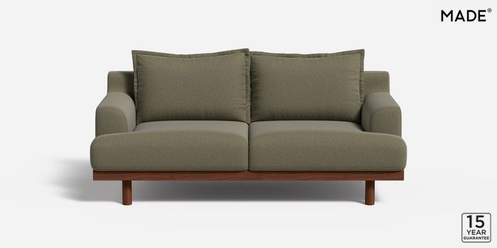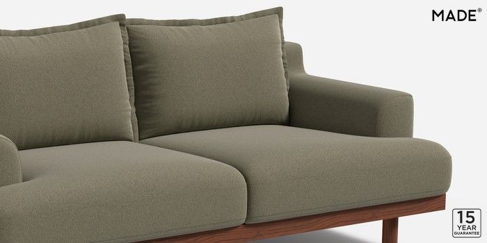 6.12.1 Turin by Made 3 Seater Small Sofa Textured Slub Weave Soft Olive Green Plinth - Walnut | Made Click here to use our website with more accessibility support, for example screen readers