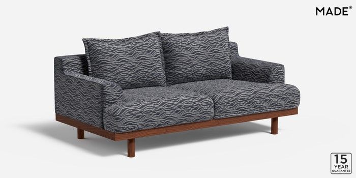 6.12.1 Turin by Made 3 Seater Small Sofa Textured Wave Boucle Dark Ink Blue Plinth - Walnut | Made Click here to use our website with more accessibility support, for example screen readers