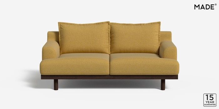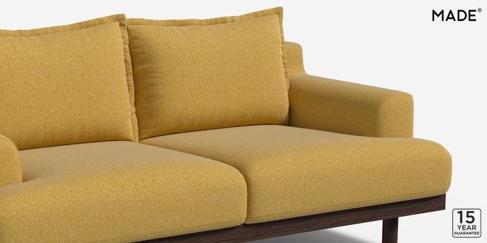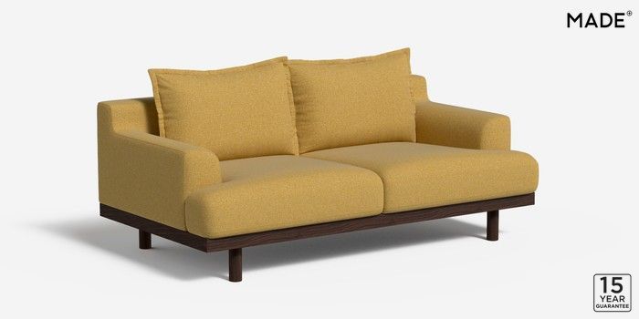 6.12.1 Turin by Made 3 Seater Small Sofa Textured Woven Warm Ochre Plinth - Walnut | Made Click here to use our website with more accessibility support, for example screen readers