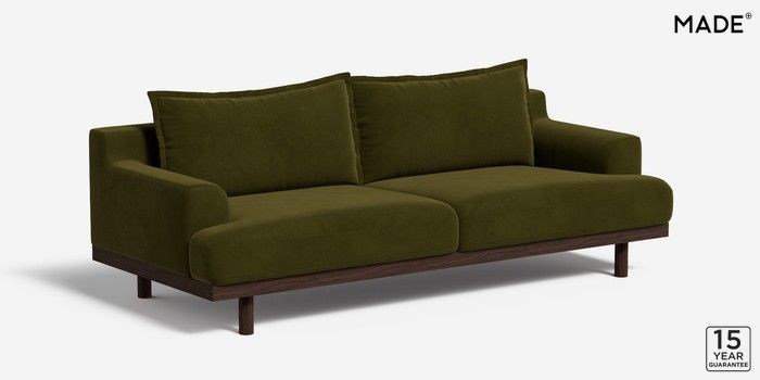 6.12.1 Turin by Made 4 Seater Sofa Matt Velvet Easy Clean Deep Olive Green Plinth - Walnut | Made Click here to use our website with more accessibility support, for example screen readers