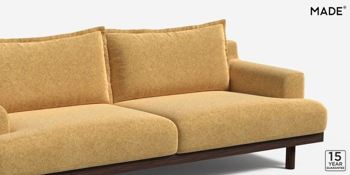 6.12.1 Turin by Made 4 Seater Sofa Soft Chenille Easy Clean Yellow Ochre Plinth - Walnut | Made Click here to use our website with more accessibility support, for example screen readers