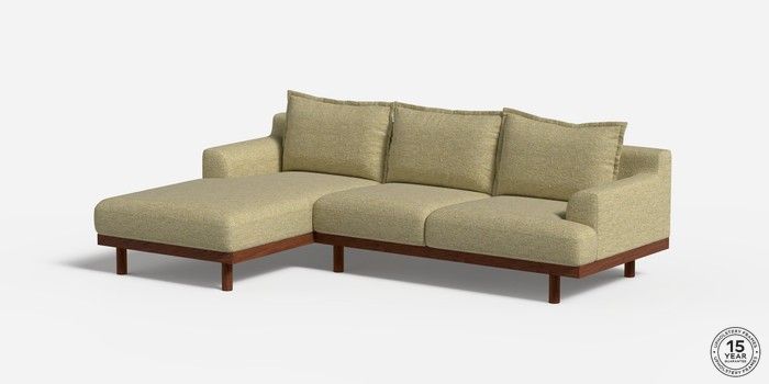 6.12.1 Turin by Made Medium Sofa Chaise - Left Hand Boucle Textured Weave Pale Fir Green Plinth - Walnut | Made Click here to use our website with more accessibility support, for example screen readers