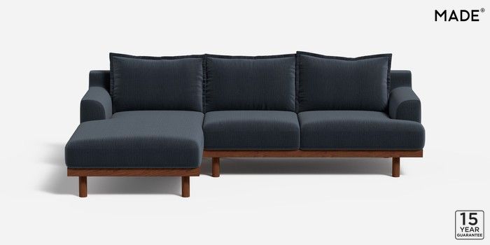 6.12.1 Turin by Made Medium Sofa Chaise - Left Hand Matt Corduroy Midnight Blue Plinth - Walnut | Made Click here to use our website with more accessibility support, for example screen readers