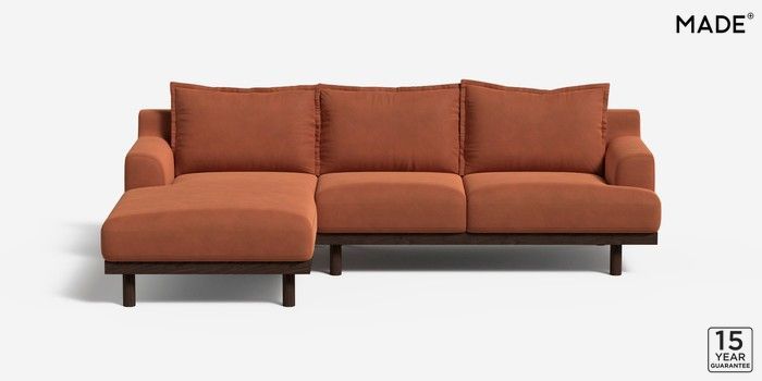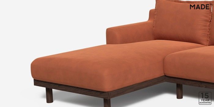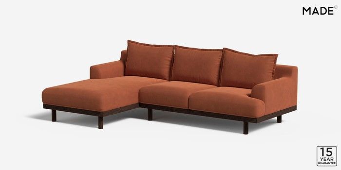6.12.1 Turin by Made Medium Sofa Chaise - Left Hand Matt Velvet Easy Clean Burnt Orange Plinth - Walnut | Made Click here to use our website with more accessibility support, for example screen readers