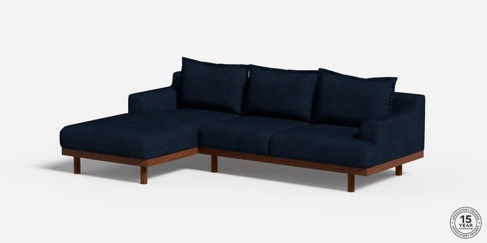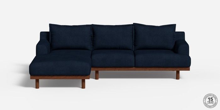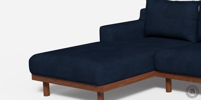 6.12.1 Turin by Made Medium Sofa Chaise - Left Hand Matt Velvet Easy Clean Dark Navy Blue Plinth - Walnut | Made Click here to use our website with more accessibility support, for example screen readers