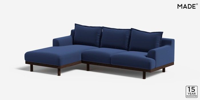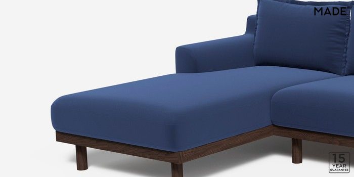 6.12.1 Turin by Made Medium Sofa Chaise - Left Hand Matt Velvet Easy Clean Navy Blue Plinth - Walnut | Made Click here to use our website with more accessibility support, for example screen readers