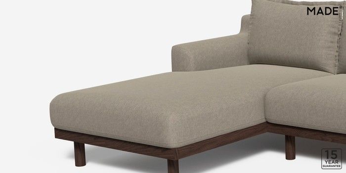 6.12.1 Turin by Made Medium Sofa Chaise - Left Hand Soft Chenille Easy Clean Pebble Grey Plinth - Walnut | Made Click here to use our website with more accessibility support, for example screen readers