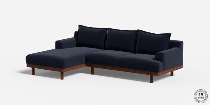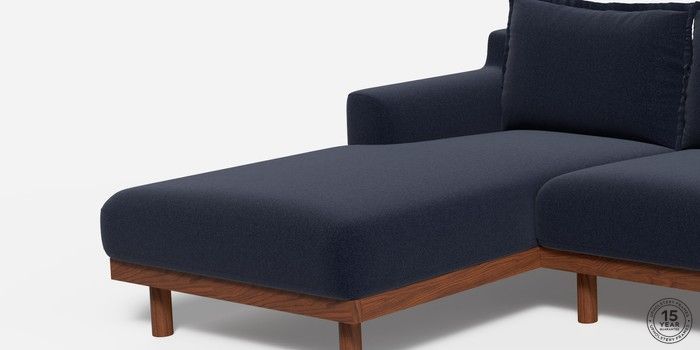 6.12.1 Turin by Made Medium Sofa Chaise - Left Hand Soft Touch Boucle Navy Blue Plinth - Walnut | Made Click here to use our website with more accessibility support, for example screen readers