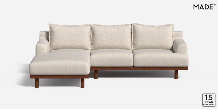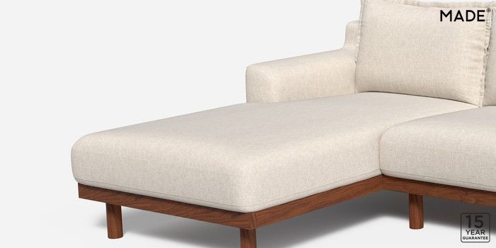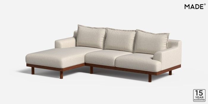 6.12.1 Turin by Made Medium Sofa Chaise - Left Hand Textured Slub Weave Light Natural Plinth - Walnut | Made Click here to use our website with more accessibility support, for example screen readers