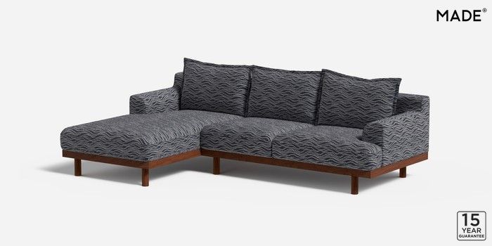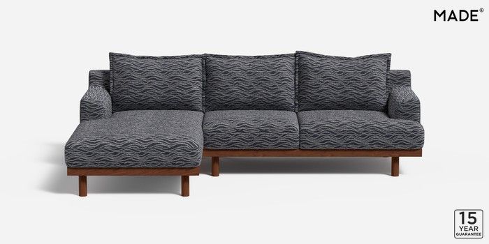 6.12.1 Turin by Made Medium Sofa Chaise - Left Hand Textured Wave Boucle Dark Ink Blue Plinth - Walnut | Made Click here to use our website with more accessibility support, for example screen readers