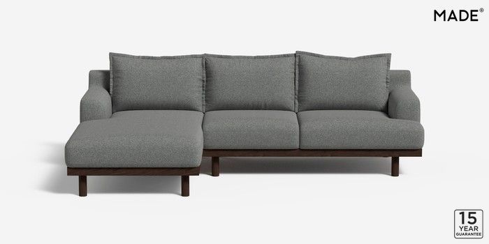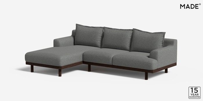 6.12.1 Turin by Made Medium Sofa Chaise - Left Hand Textured Woven Ink Blue Plinth - Walnut | Made Click here to use our website with more accessibility support, for example screen readers