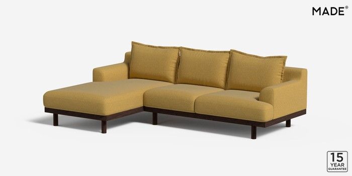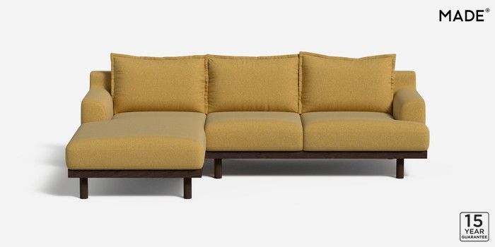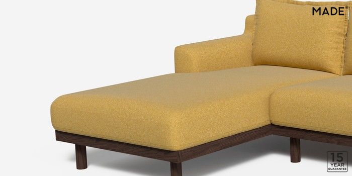 6.12.1 Turin by Made Medium Sofa Chaise - Left Hand Textured Woven Warm Ochre Plinth - Walnut | Made Click here to use our website with more accessibility support, for example screen readers