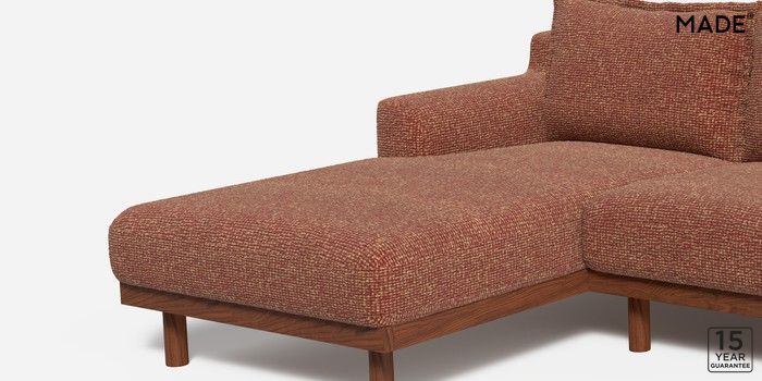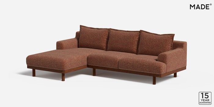 6.12.1 Turin by Made Medium Sofa Chaise - Left Hand Tonal Boucle Maroon Red and Light Caramel Plinth - Walnut | Made Click here to use our website with more accessibility support, for example screen readers