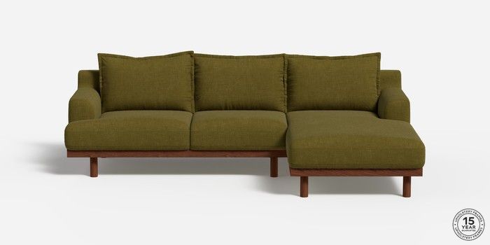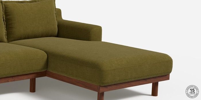 6.12.1 Turin by Made Medium Sofa Chaise - Right Hand Etched Chenille Moss Green Plinth - Walnut | Made Click here to use our website with more accessibility support, for example screen readers
