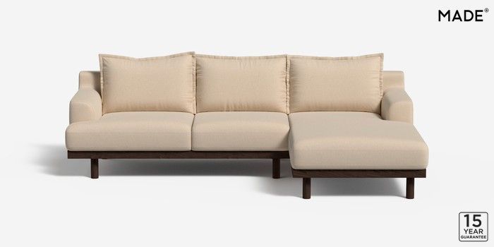 6.12.1 Turin by Made Medium Sofa Chaise - Right Hand Made Weave Light Stone Natural Plinth - Walnut | Made Click here to use our website with more accessibility support, for example screen readers