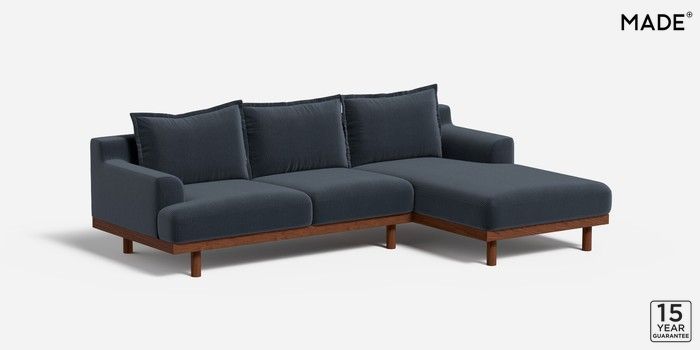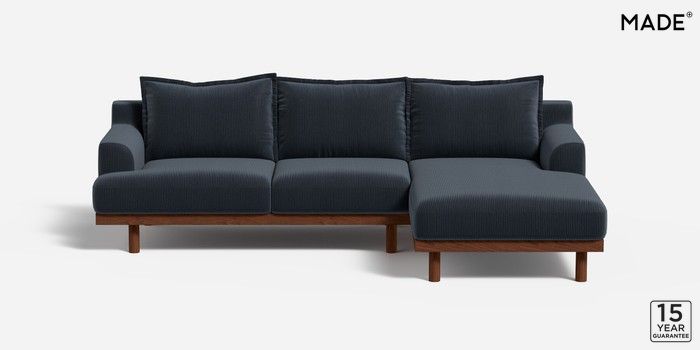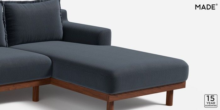 6.12.1 Turin by Made Medium Sofa Chaise - Right Hand Matt Corduroy Midnight Blue Plinth - Walnut | Made Click here to use our website with more accessibility support, for example screen readers