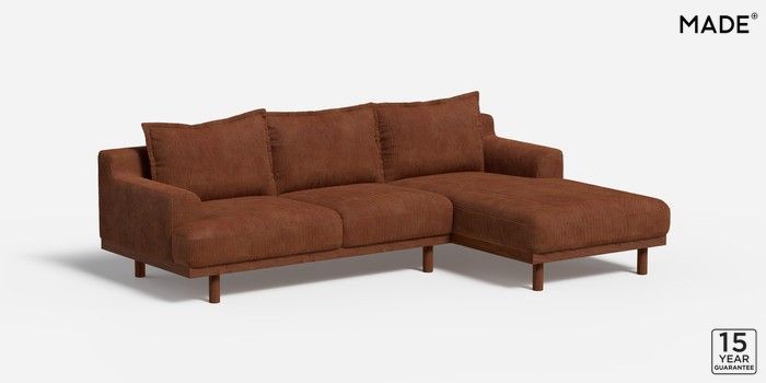 6.12.1 Turin by Made Medium Sofa Chaise - Right Hand Matt Corduroy Nutmeg Orange Plinth - Walnut | Made Click here to use our website with more accessibility support, for example screen readers