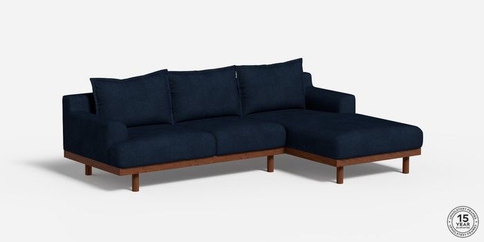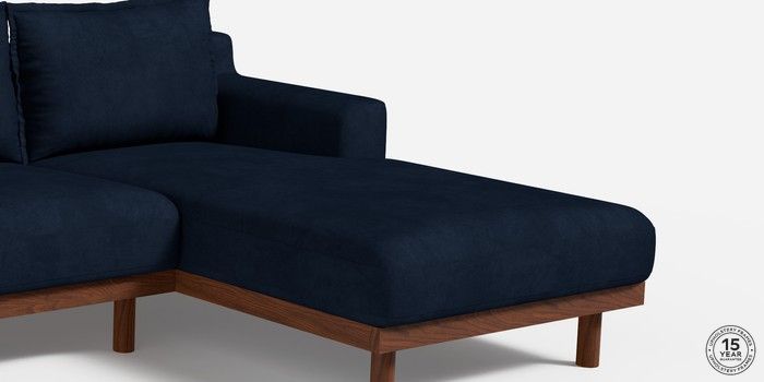6.12.1 Turin by Made Medium Sofa Chaise - Right Hand Matt Velvet Easy Clean Dark Navy Blue Plinth - Walnut | Made Click here to use our website with more accessibility support, for example screen readers