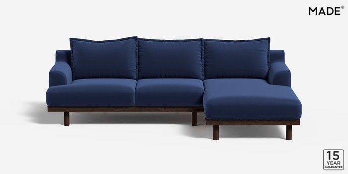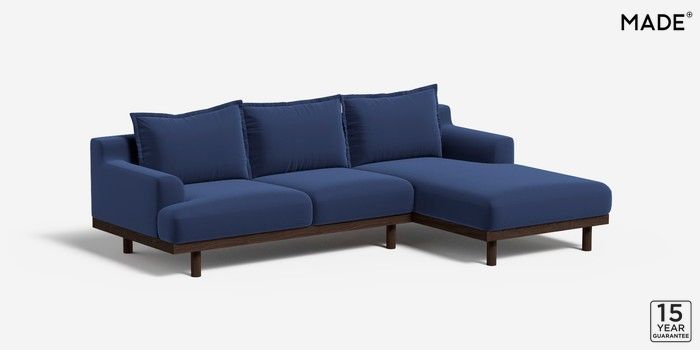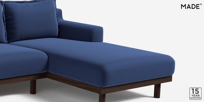 6.12.1 Turin by Made Medium Sofa Chaise - Right Hand Matt Velvet Easy Clean Navy Blue Plinth - Walnut | Made Click here to use our website with more accessibility support, for example screen readers