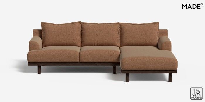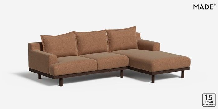 6.12.1 Turin by Made Medium Sofa Chaise - Right Hand Soft Chenille Easy Clean Dark Caramel Natural Plinth - Walnut | Made Click here to use our website with more accessibility support, for example screen readers