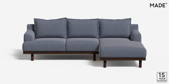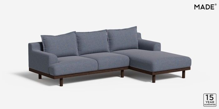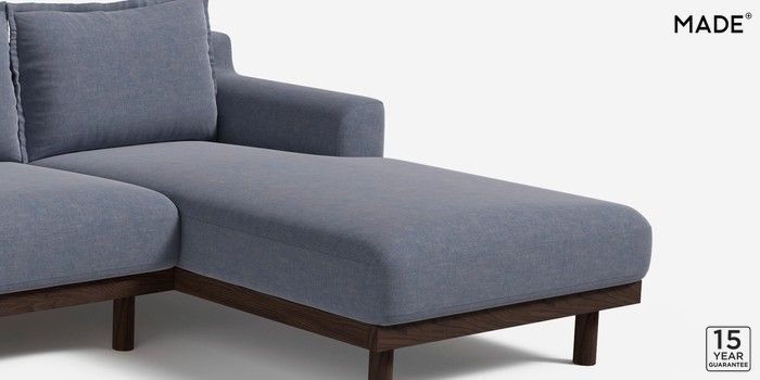 6.12.1 Turin by Made Medium Sofa Chaise - Right Hand Soft Chenille Easy Clean Denim Blue Plinth - Walnut | Made Click here to use our website with more accessibility support, for example screen readers
