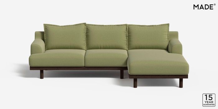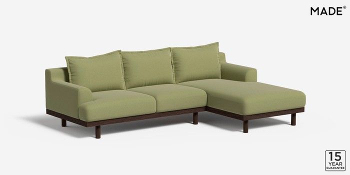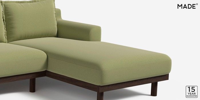 6.12.1 Turin by Made Medium Sofa Chaise - Right Hand Soft Chenille Easy Clean Green Tea Plinth - Walnut | Made Click here to use our website with more accessibility support, for example screen readers