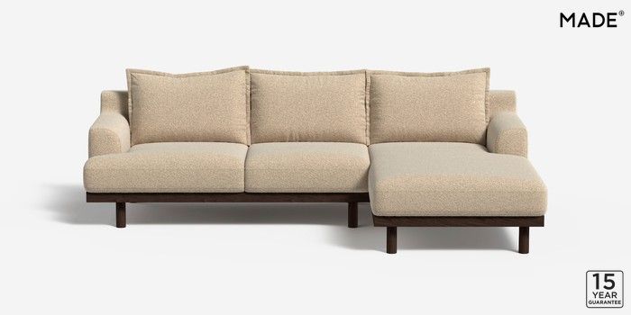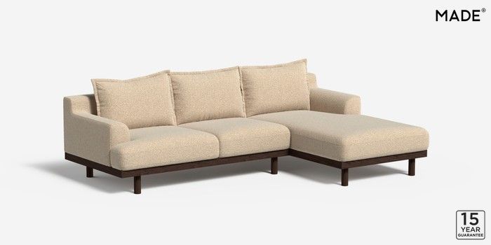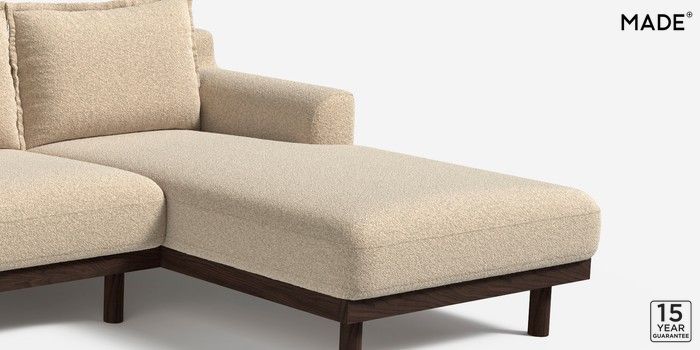 6.12.1 Turin by Made Medium Sofa Chaise - Right Hand Soft Touch Boucle Natural Linen Plinth - Walnut | Made Click here to use our website with more accessibility support, for example screen readers